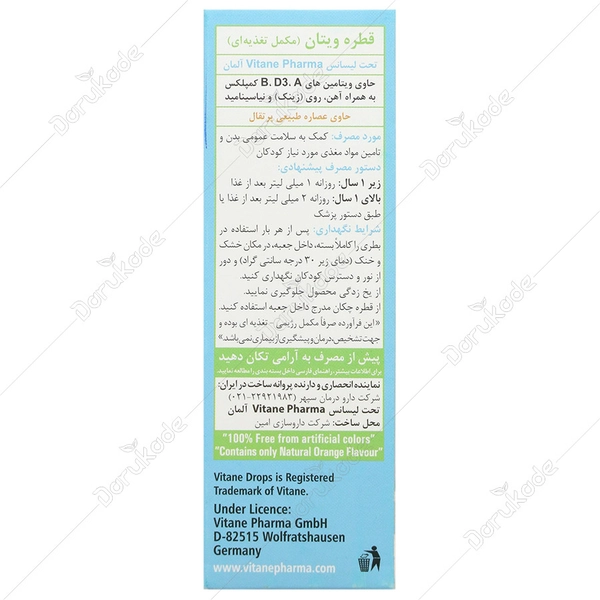 - ویتامین A: ویتامین A موجود در قطره ویتان برای بینایی، رشد و نمو کودک شما ضروری است.