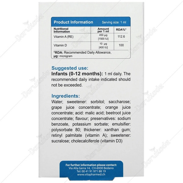 از آنجایی که هر 1 میلی لیتر از قطره ویتامین آ د ویواکیدز، حاوی 400 واحد ویتامین D و 1500 واحد ویتامین A بوده و نیاز روزانه سنین مختلف به این دو ویتامین متفاوت است، بنابراین شما می توانید در این زمینه و تعیین دقیق میزان مصرف مورد نیاز کودکتان با پزشک مشورت نمایید.