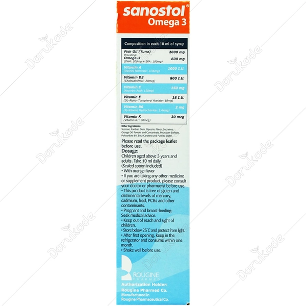 سانستول امگا ۳ (Sanostol Omega 3) شربت حاوی روغن ماهی تُن (Omega 3) ویژه کودکان بالای 3 سال است. این مکمل در تامین نیاز بدن به اسیدهای چرب امگا 3 و برخی دیگر از ویتامینهای ضروری نقش دارد. شربت امگا ۳ سانستول به رشد جسمی و ذهنی، سلامت سیستم عصبی، تقویت سیستم ایمنی و همچنین سلامت و عملکرد سیستم بینایی کمک میکند.