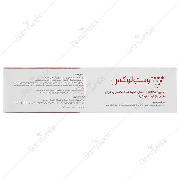 وستولوکس vestolux فرآورده طبیعی است و با داشتن فرمولاسیونی منحصر به فرد و برگرفته از عصاره تغلیظ شده گوجه فرنگی می تواند در کمک به حفظ سلامت قلب و عروق موثر باشد. وستولوکس با پروانه شرکت تچرا فارمد در ایران تولید می شود. این محصول در هر جعبه مقوایی حاوی 30 عدد قرص در 3 بلیستر 10 عددی است.