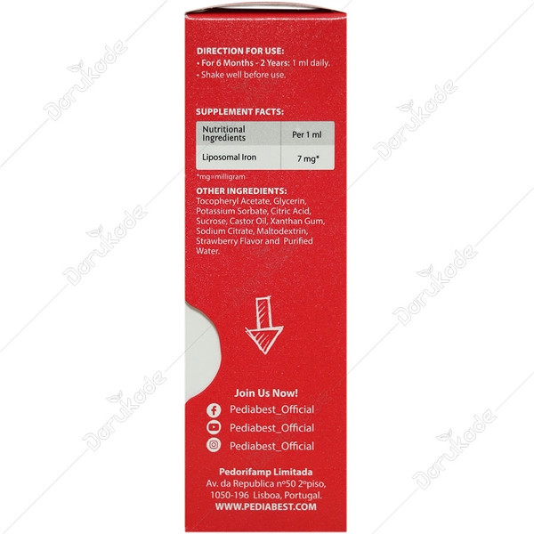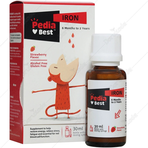 قطره آهن پدیابست با طعم توت فرنگی، به تامین آهن مورد نیاز خردسالان از 6 ماهگی تا 2 سالگی کمک میکند. قطره آهن پدیابست حاوی آهن به فرم لیپوزومال بوده که علاوهبر جذب بالا، عوارض گوارشی کم و تحمل بهتری دارد. علاوهبر اینکه قطره اهن پدیابست دندانهای فرزند دلبند شما را سیاه نمیکند. قطره آهن پدیابست حاوی 7 میلیگرم آهن عنصری در هر میلیلیتر است.