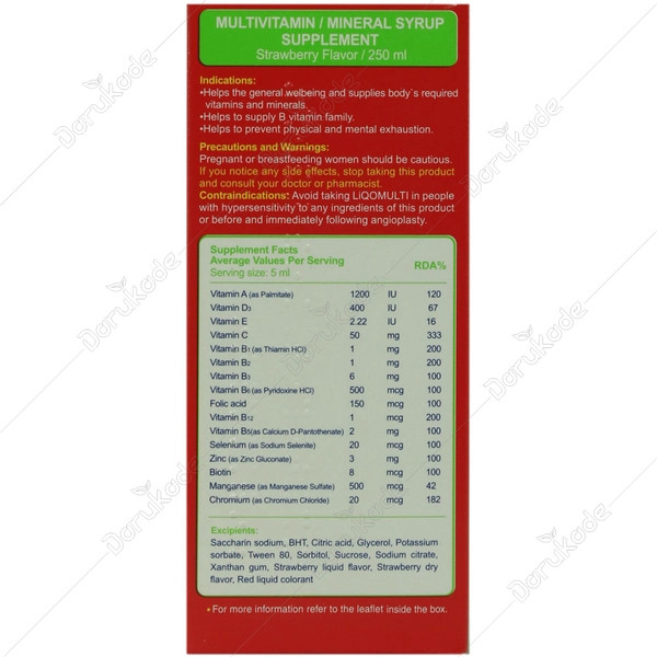 تاکنون عوارضی مبنی بر استفاده از شربت لیکو مولتی در بزرگسالان سالم گزارش نشده است.