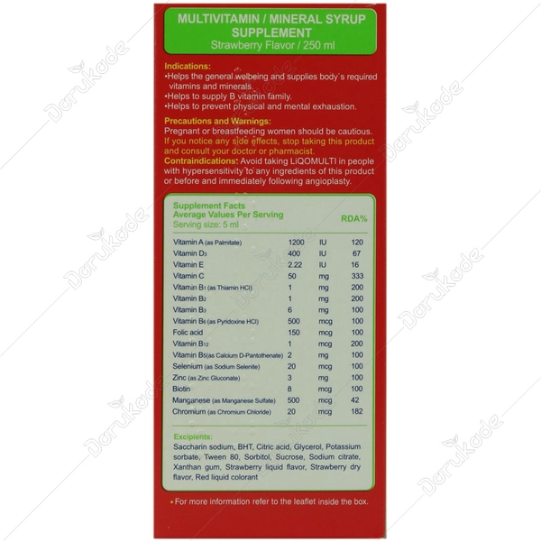 تاکنون عوارضی مبنی بر استفاده از شربت لیکو مولتی در بزرگسالان سالم گزارش نشده است.
