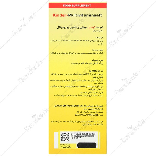 شربت kinder، همان شربت مولتی ویتامین یورو ویتال است که به نمایندگی شرکت حکیمان طب کار، تحت لیسانس کمپانی آلمانی Euro OTC Pharma Gmbh در کارخانه داروسازی هگمتان داروی غرب تولید میشود. شربت مولتی کیندر در بطریهای 200 میلی لیتری با طعم پرتقال تولید میشود.