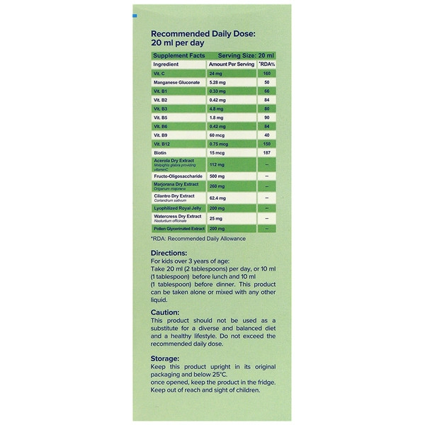 بنابر دستور عمل شرکت سازنده، کودکان 3 تا 6 سال میتوانند روزانه 5 میلیلیتر (معادل یک قاشق چایخوری) دو بار در روز، ترجیحاً نیم ساعت قبل از وعدههای غذایی اصلی، مصرف کنند تا اثر تحریک اشتها به حداکثر برسد. برای کودکان 7 تا 12 سال، مقدار توصیهشده 10 میلیلیتر (دو قاشق چایخوری) دو بار در روز است که بهتر است با نظارت والدین باشد.