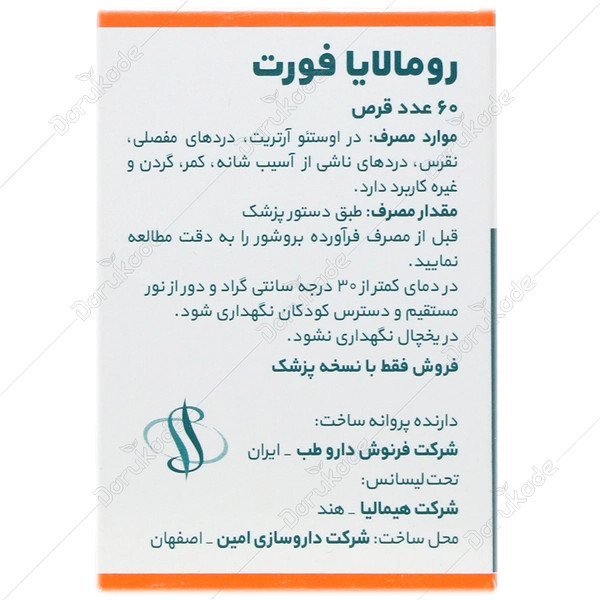 قرص رومالایا فورت یک داروی گیاهی ضد التهاب، ضد آرتریت و ضد درد برگرفته از طب آیورودیک است که در ایران تحت لیسانس شرکت هیمالیا هند، در قوطی 60 عددی عرضه میگردد. این داروی گیاهی به دلیل فرمولاسیون منحصر به فرد، گزینه ای مناسب برای بهبود کیفیت زندگی و کاهش علائم مبتلایان به استئو آرتریت و آرتریت روماتوئید است.
