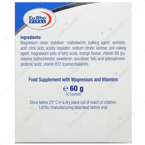 منیزیم از عناصر پر اهمیتی است که برای تقسیم سلولی، عملکرد نرمال عضلات و سیستم عصبی ضروری است. دریافت مقادیر کافی منیزیم به عملکرد نرمال ذهنی و جسمی کمک نموده و موجب کاهش خستگی و ضعف عضلانی میگردد. هر ساشه منیزیم یوروویتال، حاوی مقادیر قابل قبولی از منیزیم بوده که میتواند نیاز روزانه هر فرد بزرگسال سالم را برطرف نماید. ویتامینهای B6 و B12 موجود در این فرآورده عملکرد تقویتی این محصول بر سیستم عصبی را دوچندان مینماید.