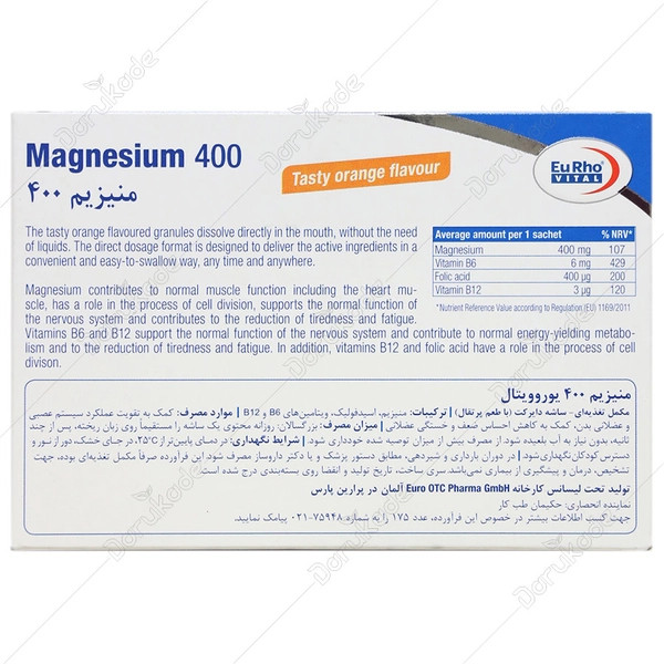 ساشه منیزیم 400 میلی گرم یوروویتال