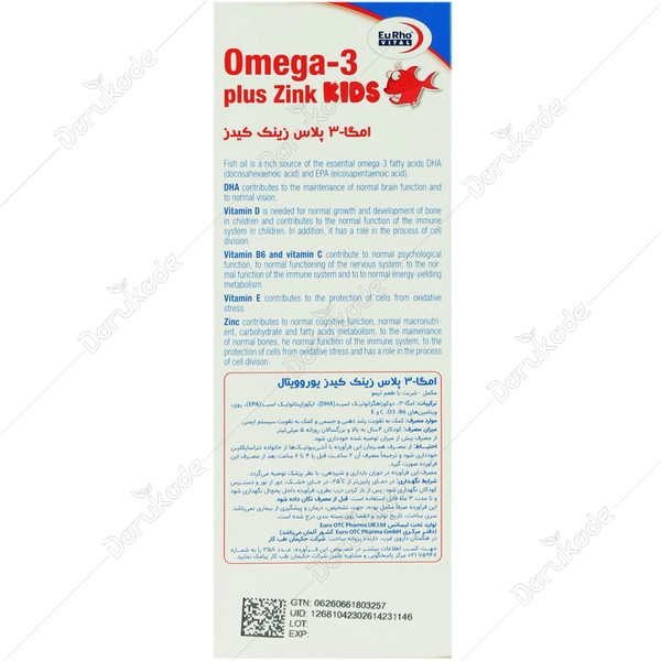 شربت امگا ۳ پلاس زینک کیدز یوروویتال تحت لیسانس یوروویتال آلمان و با پروانه شرکت حکیمان طب کار در ایران تولید می شود.