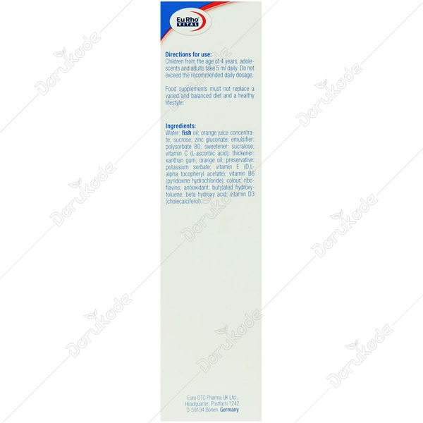 شربت امگا ۳ پلاس زینک کیدز یوروویتال تحت لیسانس یوروویتال آلمان و با پروانه شرکت حکیمان طب کار در ایران تولید می شود.
