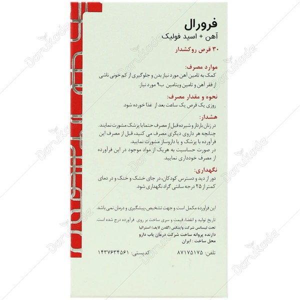 - قرص فرورال برای تامین آهن مورد نیاز بدن و بهبود علائم کم خونی ناشی از فقر آهن و فولیک اسید