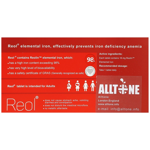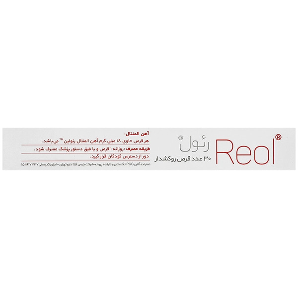 قرص رئول نوعی مکمل غذایی حاوی 18 میلی گرم آهن المنتال است و جهت کمک به تامین آهن روزانه بدن، پیشگیری و درمان کم خونی کاربرد دارد. یکی از ویژگیهای قابل توجه قرص آهن رئول فراهمی زیستی بالای آن است. قرص reol کمترین میزان عارضه جانبی ناشی از مصرف آهن را دارد. آزاد سازی و جذب رئول در دستگاه گوارش آهسته است و دوز مسمومیت با این آهن در مقایسه با دیگر مکملهای آهن، بالاتر است. به همین جهت یکی از ایمنترین مکملهای آهن، به خصوص جهت استفاده در خانمهای باردار است. از دیگر فواید قرصreol این است که طعم فلزی معمول آهن را ندارد.