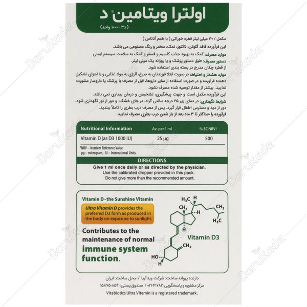 قطره اولترا ویتامین دی تحت لیسانس ویتابیوتیکس انگلستان در کارخانه داروسازی امین تولید می شود.